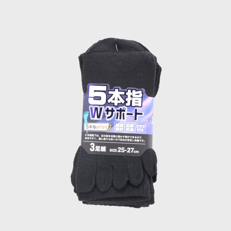 紳士5本指クルー丈サポート黒無地3足組