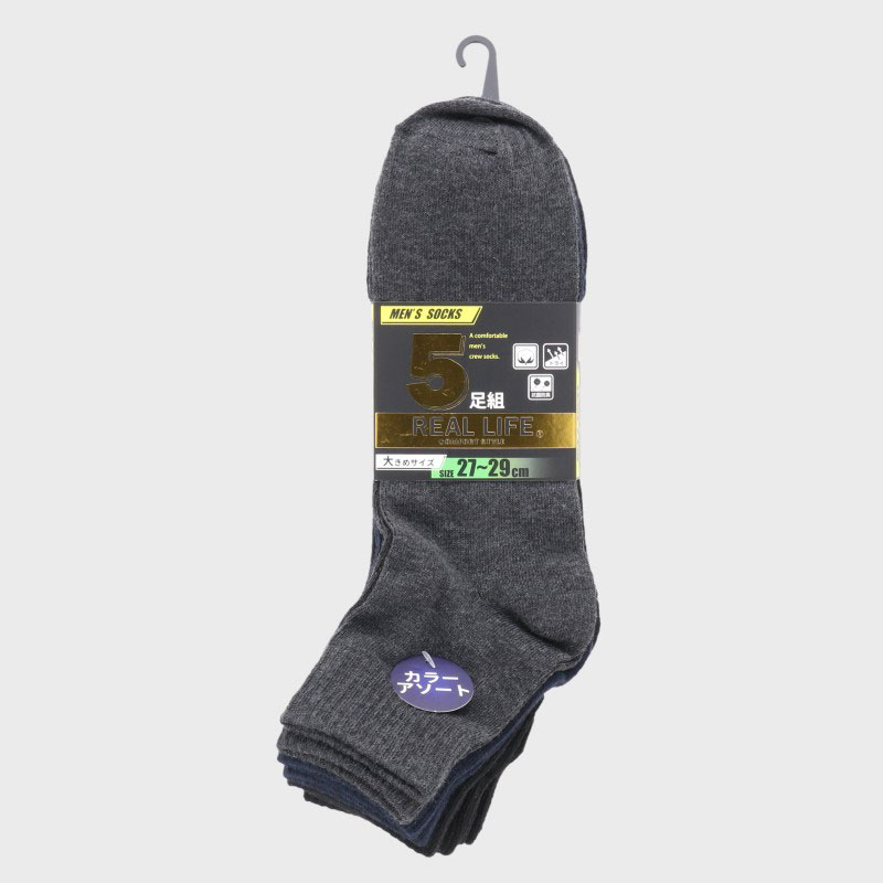 紳士綿混スニーカーソックス5足組(3色)27−29cm