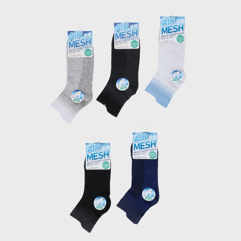 紳士綿混甲メッシュ丈長スニーカーソックス ベロ付き