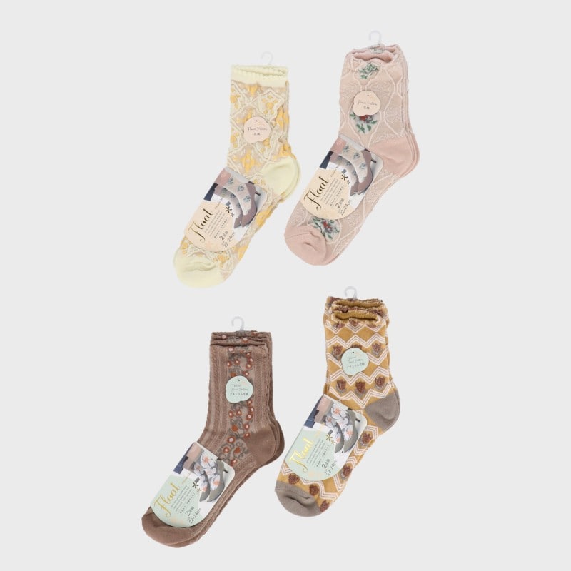 婦人クルー丈フロート柄2足組