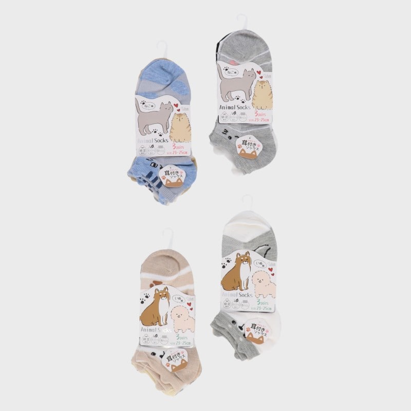 婦人耳付き甲メッシュスニーカー3足組