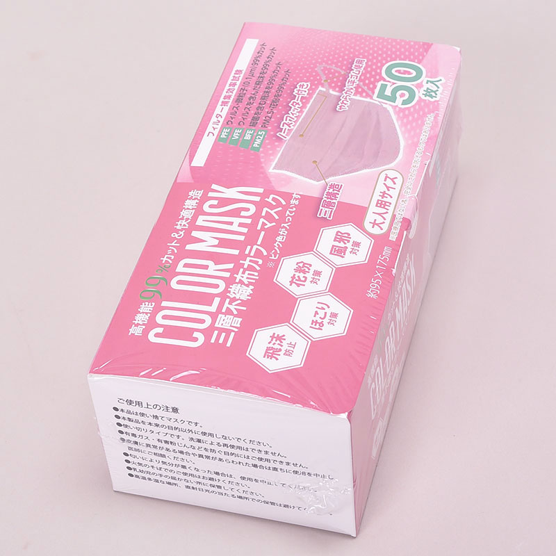 不織布カラーマスク50Pピンク