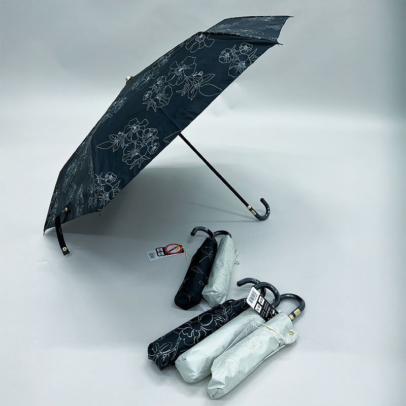 晴雨兼用裏ブラック50cm折傘(花・曲手)