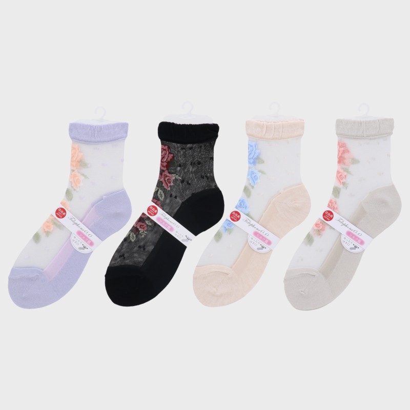 婦人『奈良産』台紙入りシルク混シースルーソックスロークルー丈