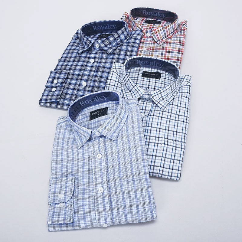 紳士大寸長袖サッカーシャツ(小格子)