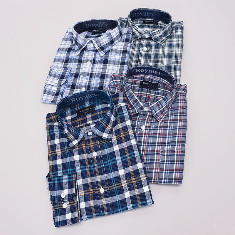紳士大寸長袖サッカーシャツ(大格子ダーク)