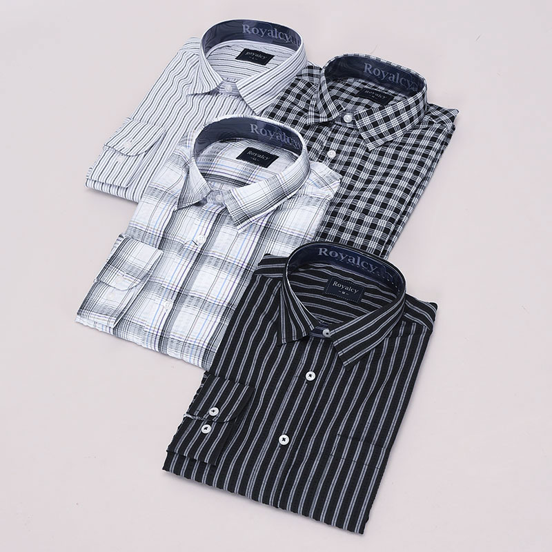 紳士大寸長袖サッカー格子シャツ(モノトーン)