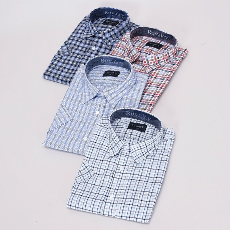 紳士大寸半袖サッカーシャツ(小格子)