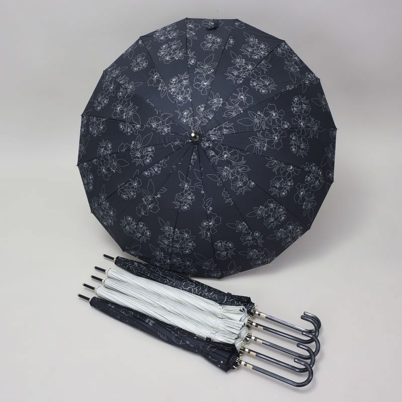 晴雨兼用ブラック55cm16本骨JP傘(花)