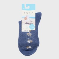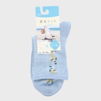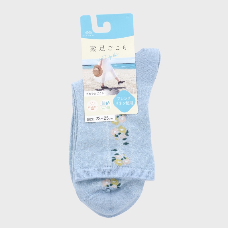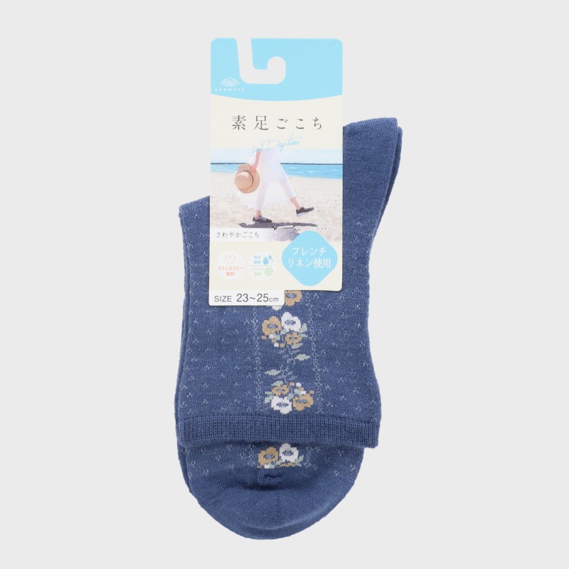 婦人『素足ごこち』フレンチリネンストレスフリー柄クルー丈ソックス15cm丈