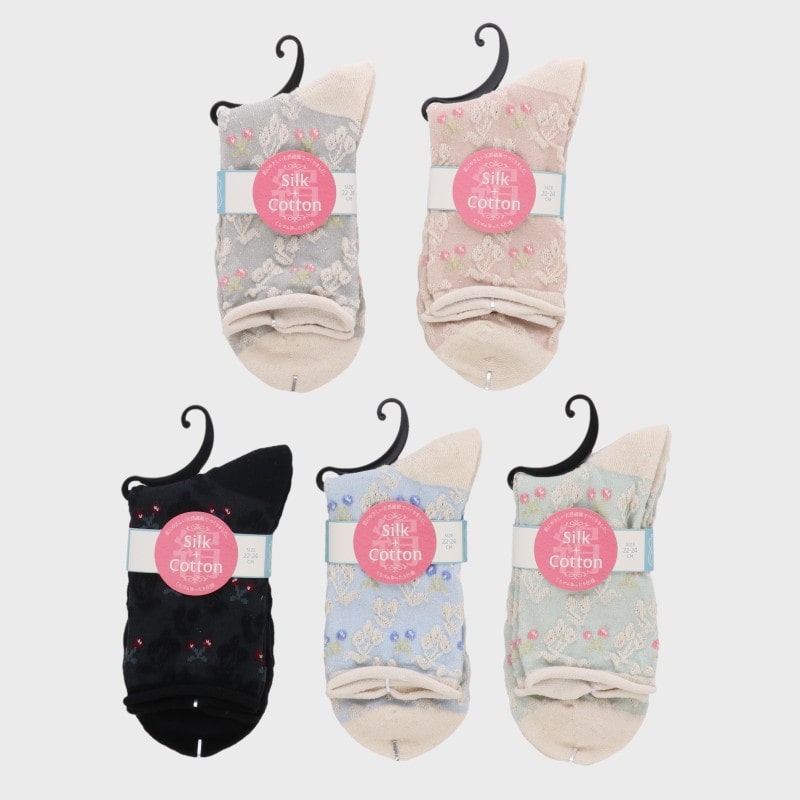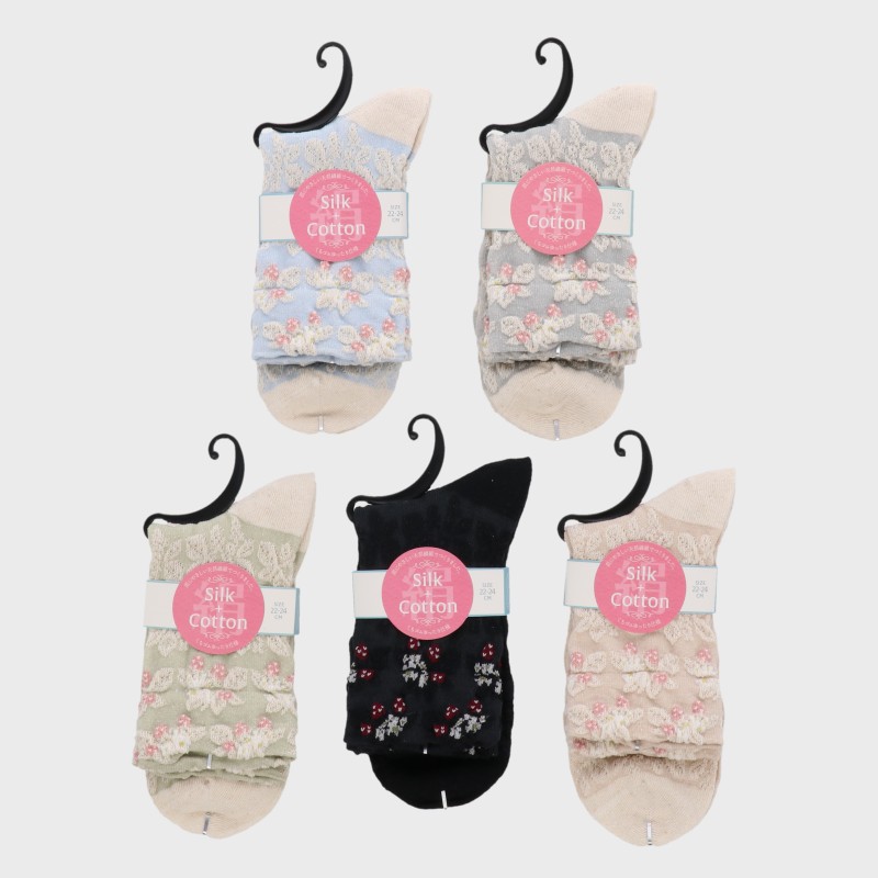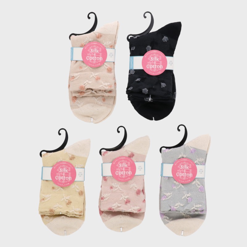婦人シルク綿クルーソックス