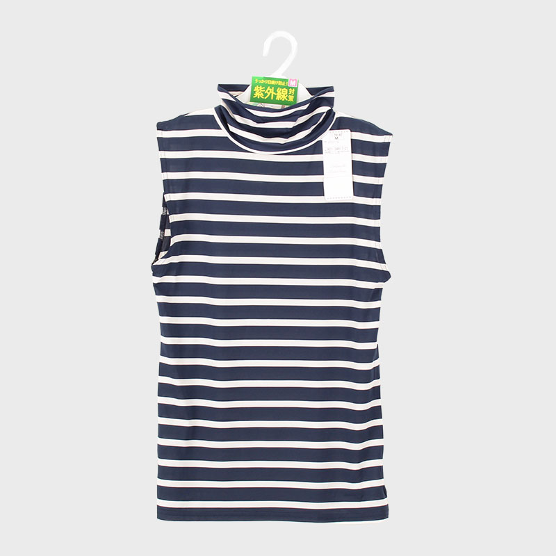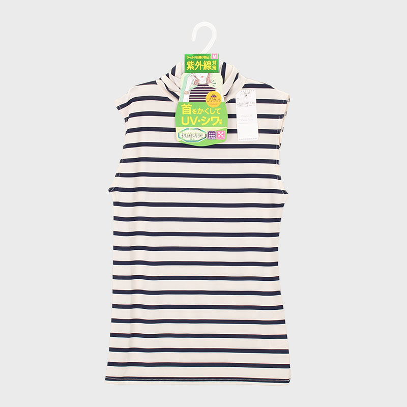 婦人『首をかくしてUV・しわ対策』ボーダーノースリブタートル