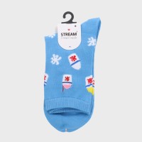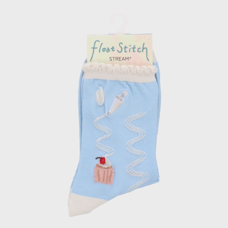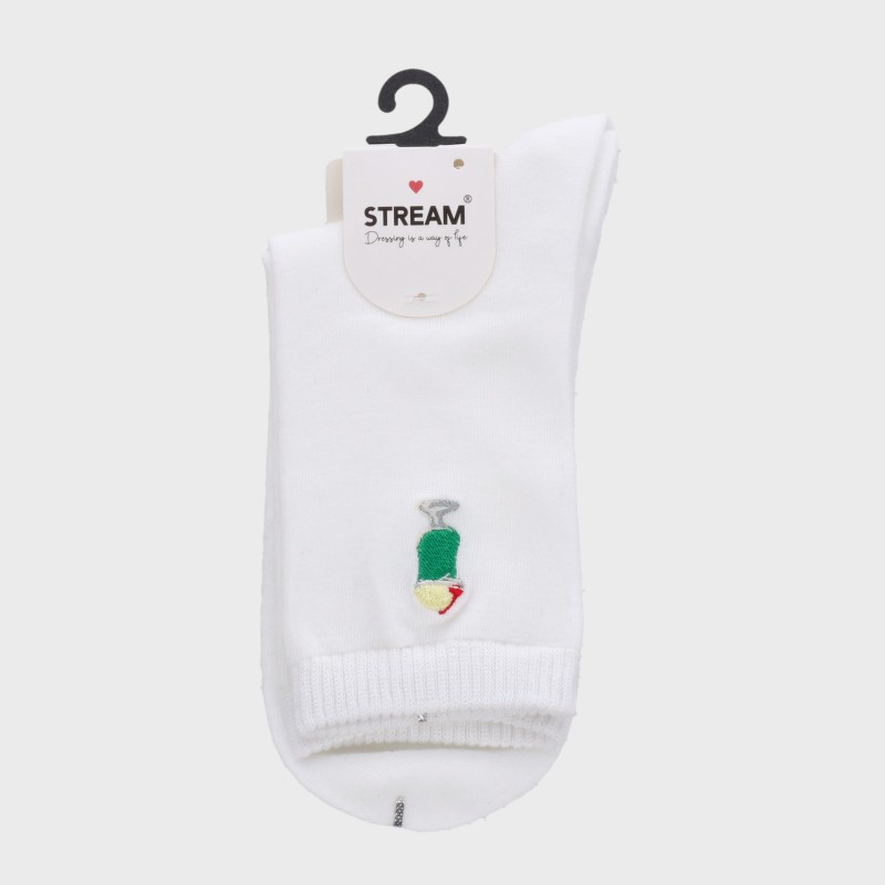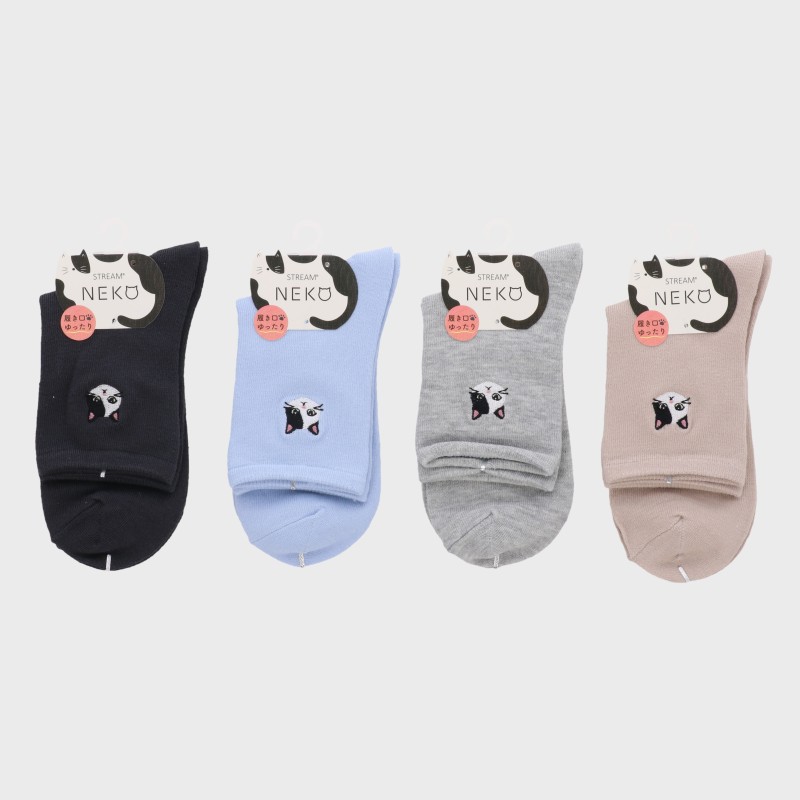婦人『STREAM 』ワンポイント刺しゅうクル‐丈ソックス