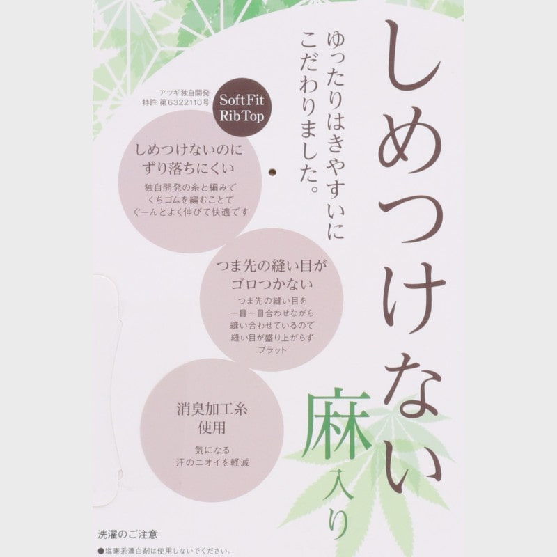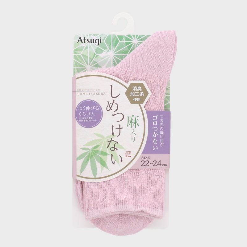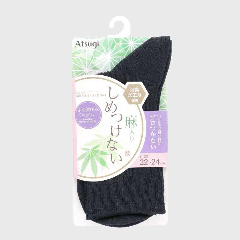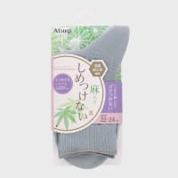 婦人『Atsugi』麻入りしめつけないクルー丈ソックス柄編み