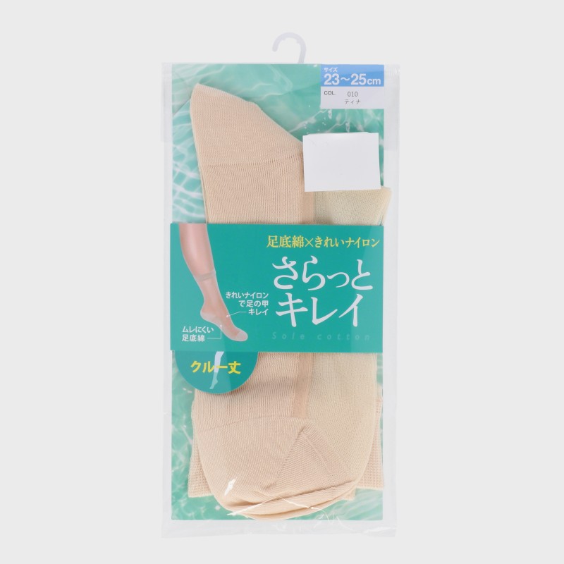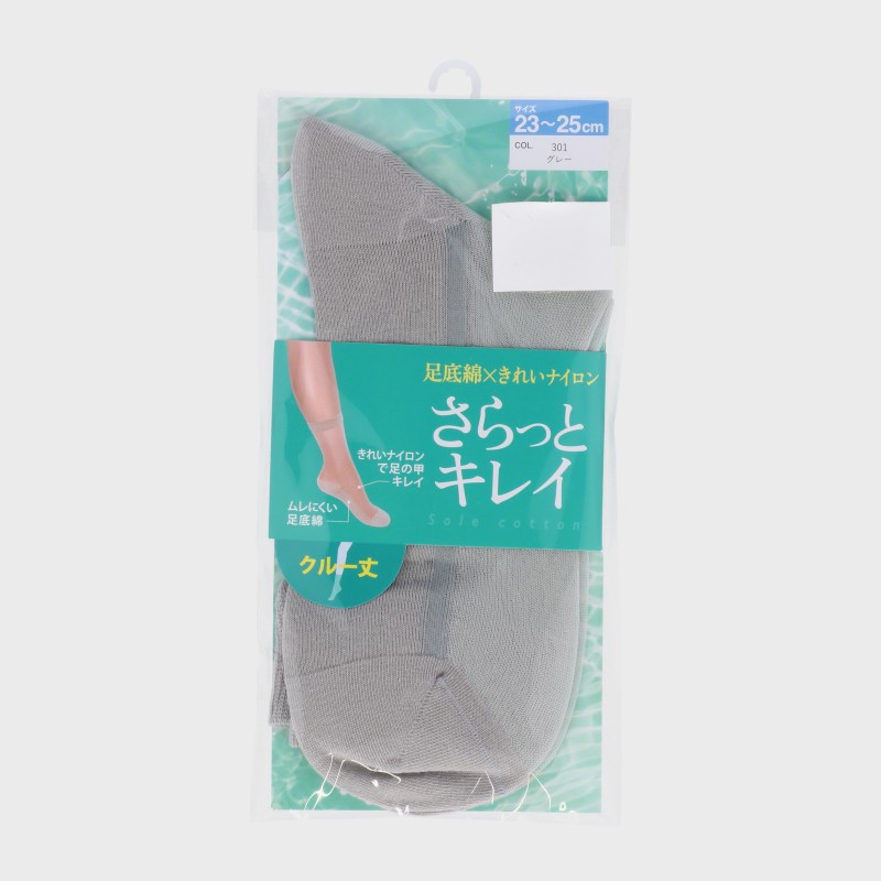 大西衣料(株)が運営する、【公式】卸・仕入れサイト『SELF WEB SHOP』で 婦人『さらっとキレイ』足底綿クルー丈ソックス をお仕入れ!
