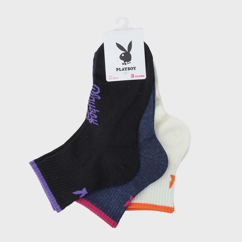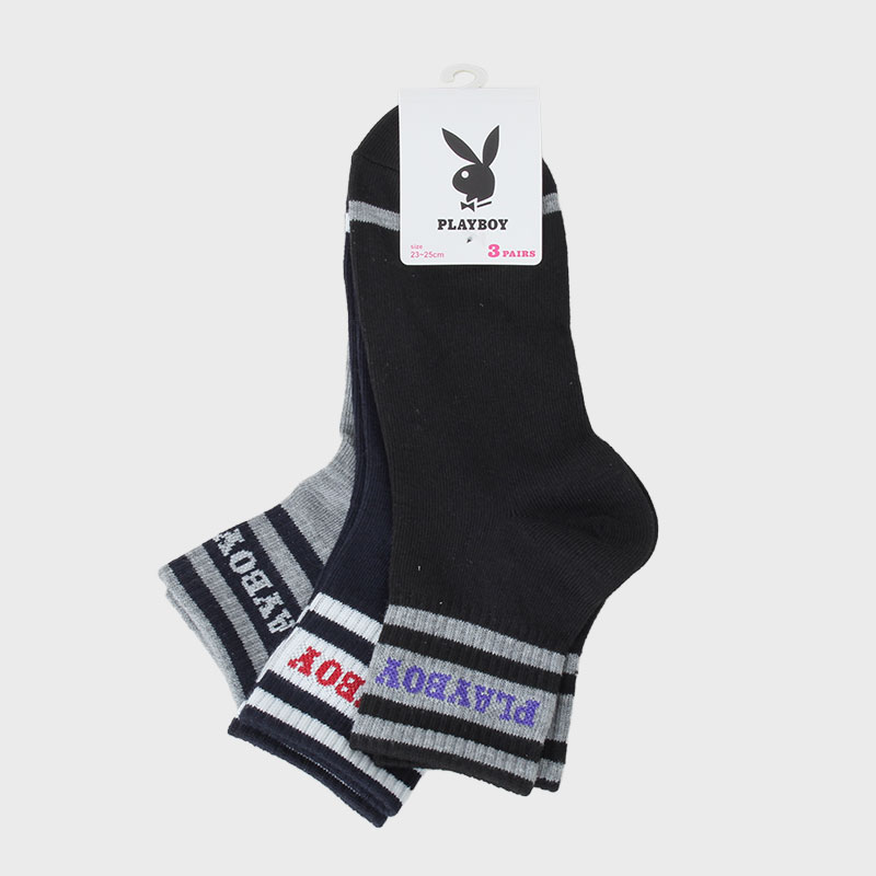 婦人『PLAYBOY』3足組クルー丈ソックス
