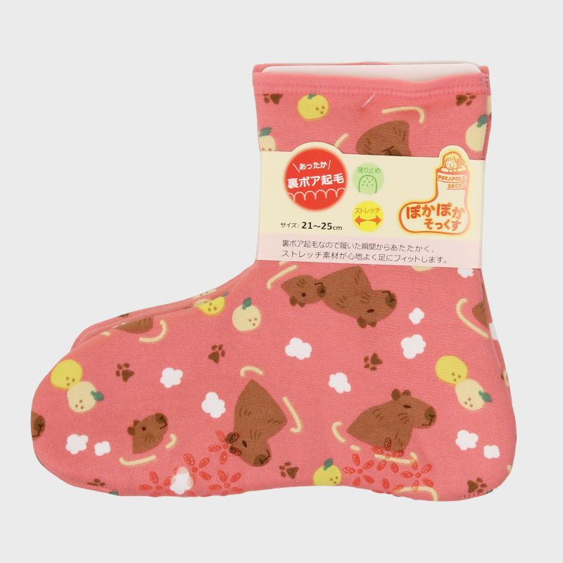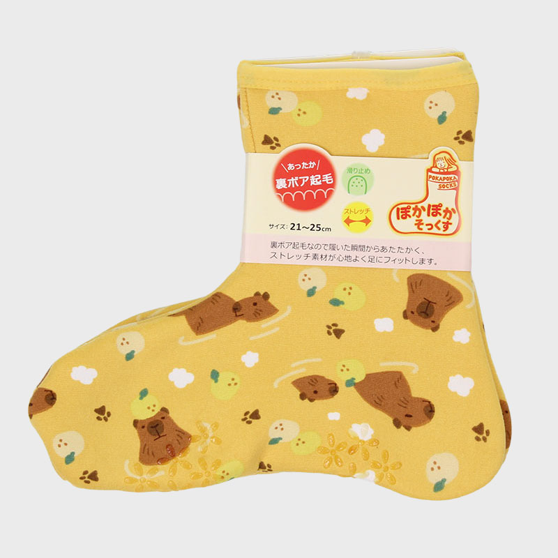 婦人『ぽかぽかそっくす』アンクル丈あったか裏ボア起毛「温泉カピパラ」