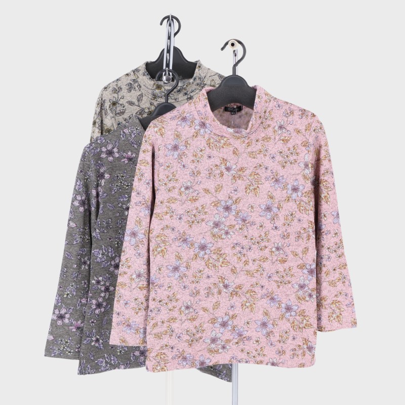 婦人大寸裏起毛ニットソープリントTシャツ