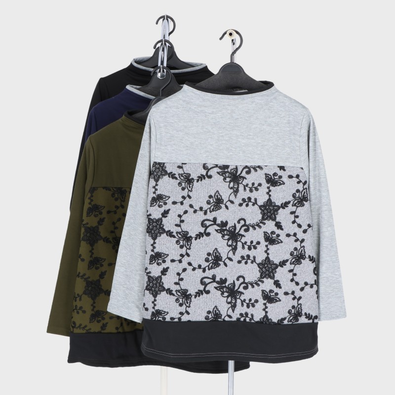 婦人裏シャギー刺繍切り替えチュニック
