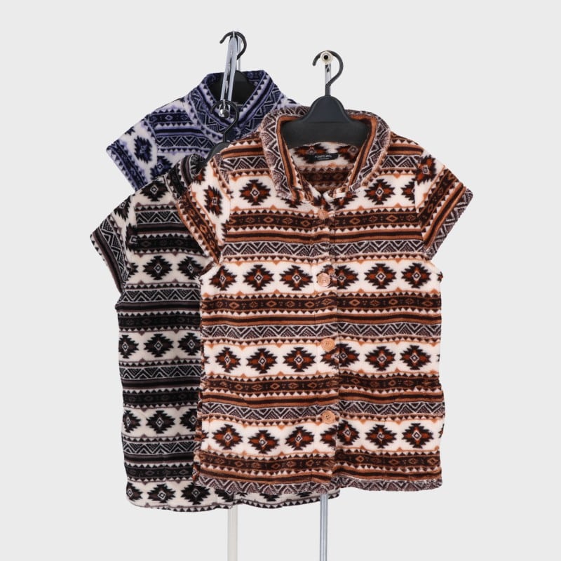 婦人モコモコジップノルディック柄キャップスリーブベスト