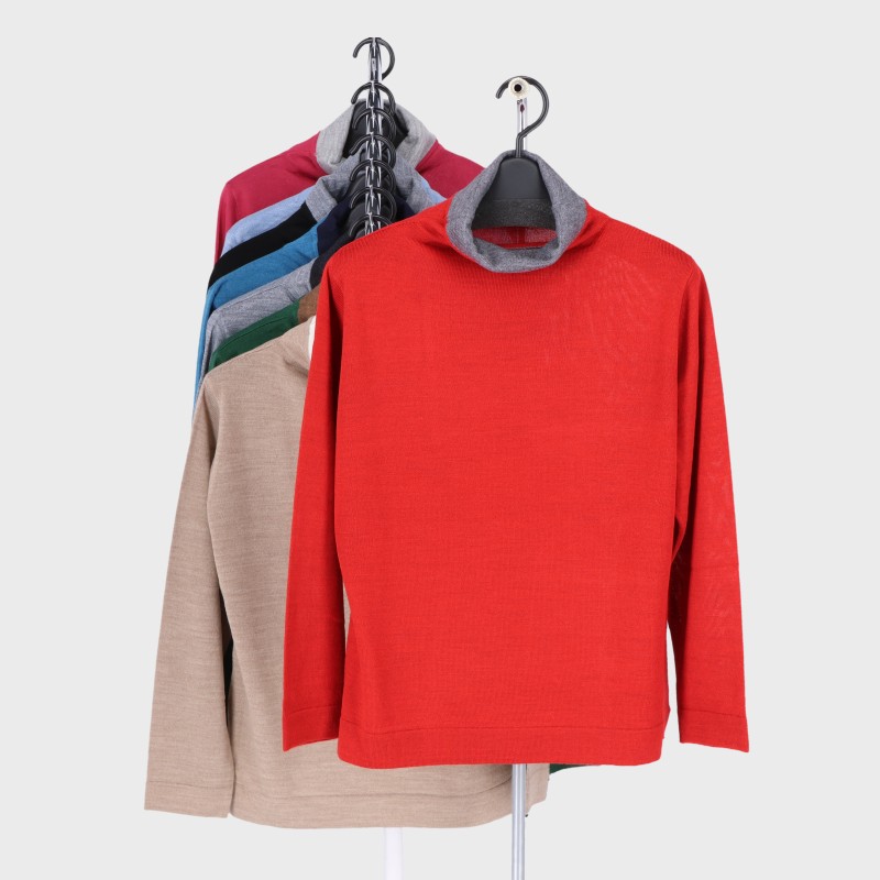 婦人タートル配色プルオーバー
