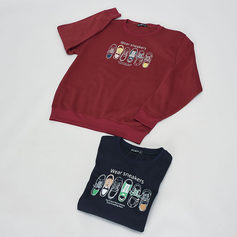 紳士大寸裏起毛クルートレーナーモチーフ柄3
