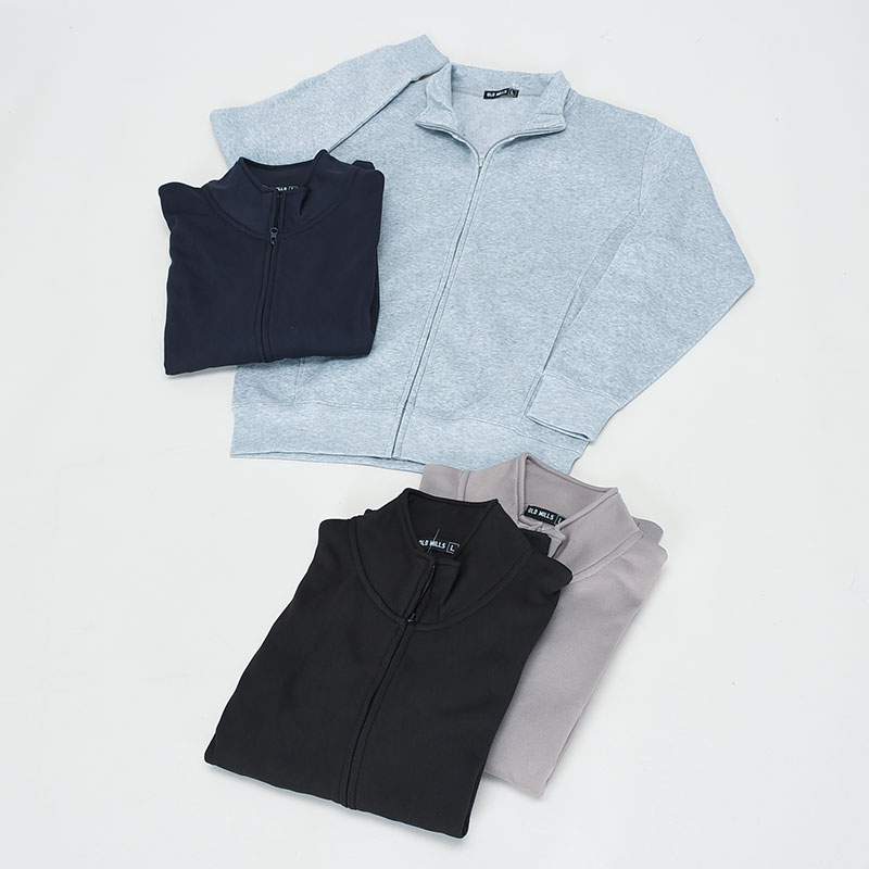 紳士大寸裏起毛無地スタンドフルジップトレーナー