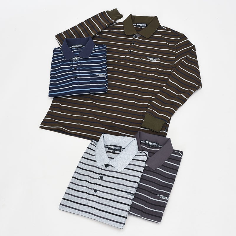 紳士長袖ブランド起毛ボーダーポロシャツ