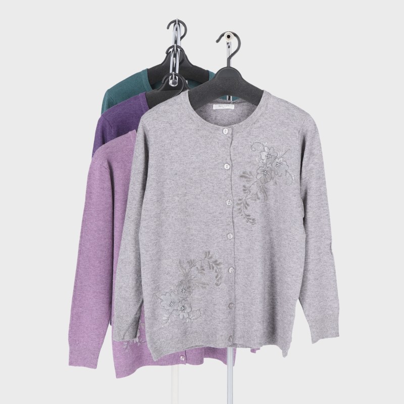 婦人もちもちニットフロッキーカーディガン