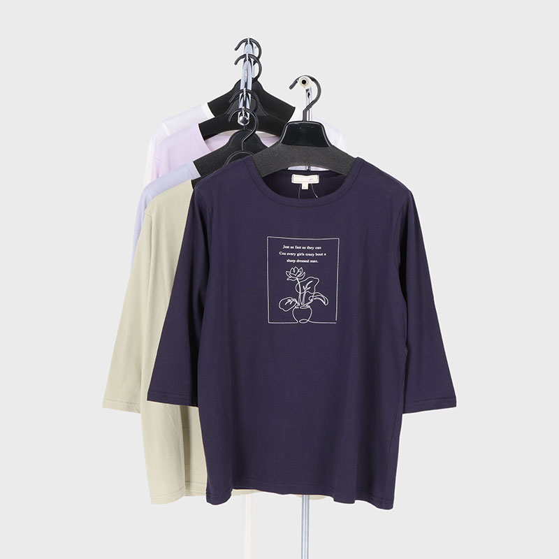 婦人大寸7分袖プリントTシャツ