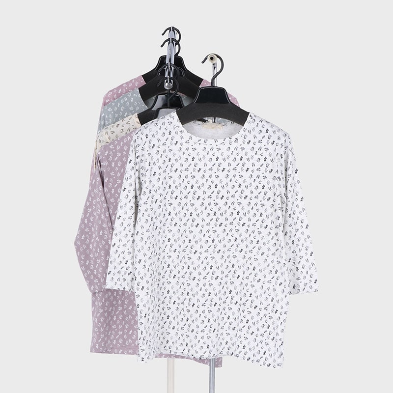 婦人大寸7分袖総プリントTシャツ