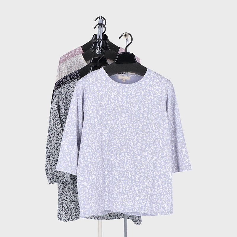 婦人大寸7分袖総プリントTシャツ