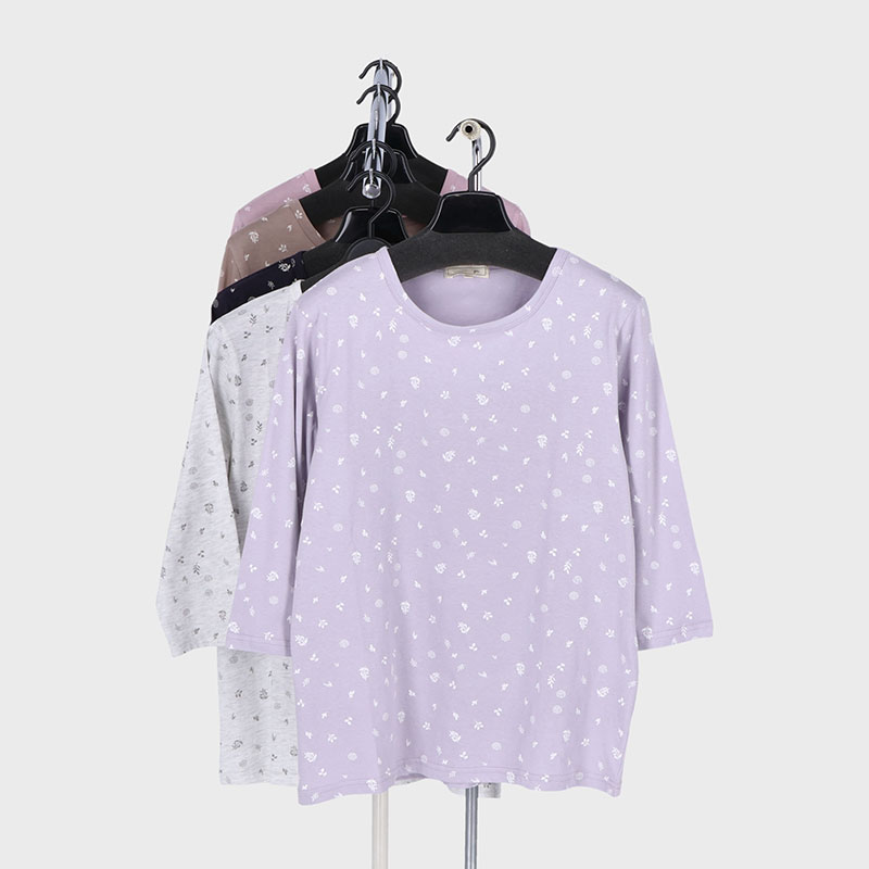 婦人大寸7分袖総プリントTシャツ