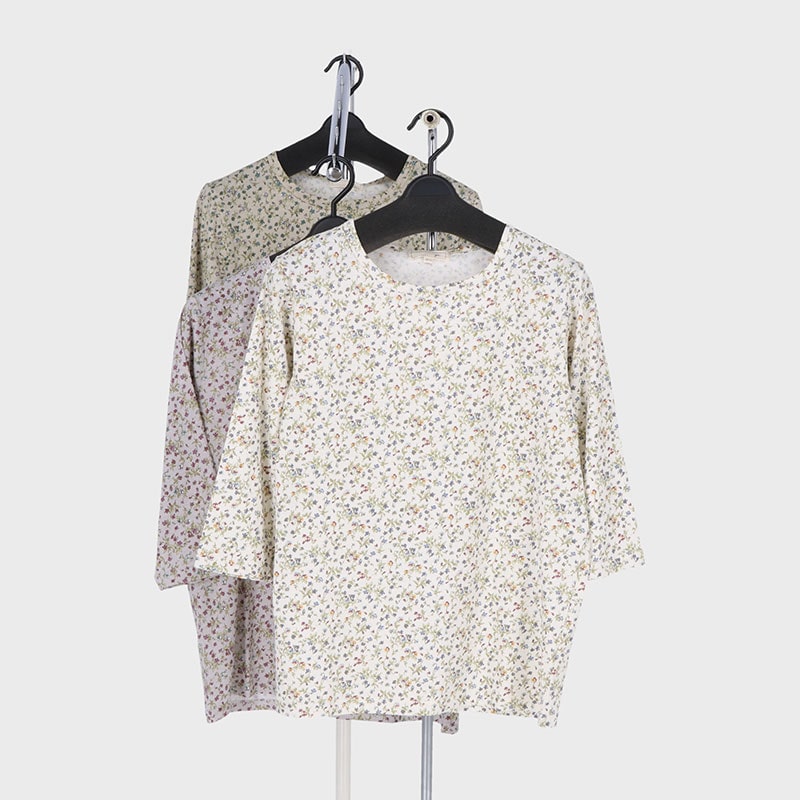 婦人7分袖総プリントTシャツ