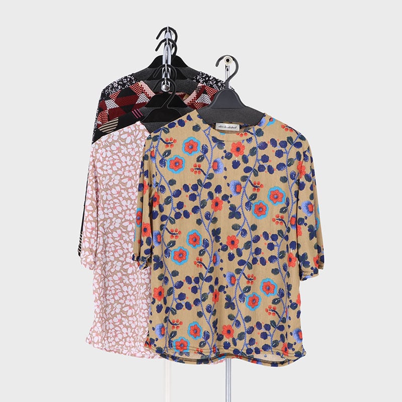 婦人5分袖楊柳プリントTシャツ