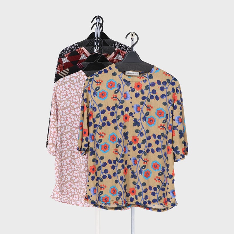 婦人大寸5分袖楊柳プリントTシャツ