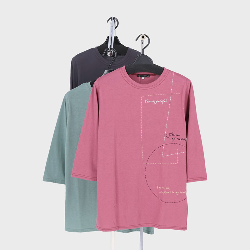 婦人7分袖刺しゅうTシャツ
