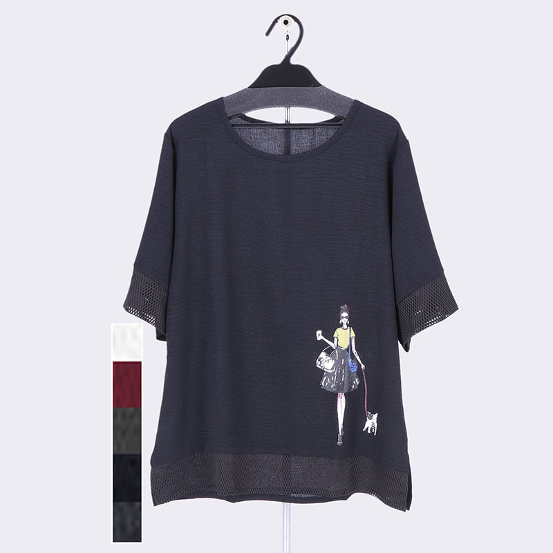 婦人半袖切替えプリントTシャツ