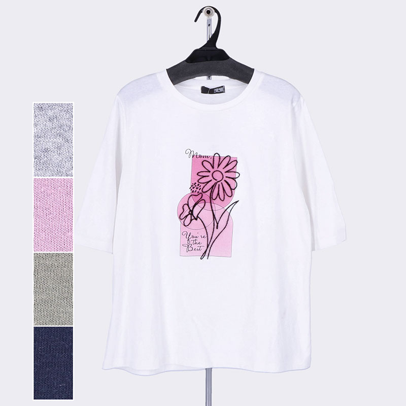 婦人半袖刺しゅうTシャツ