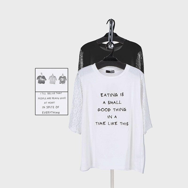 婦人袖レースプリント3柄Tシャツ