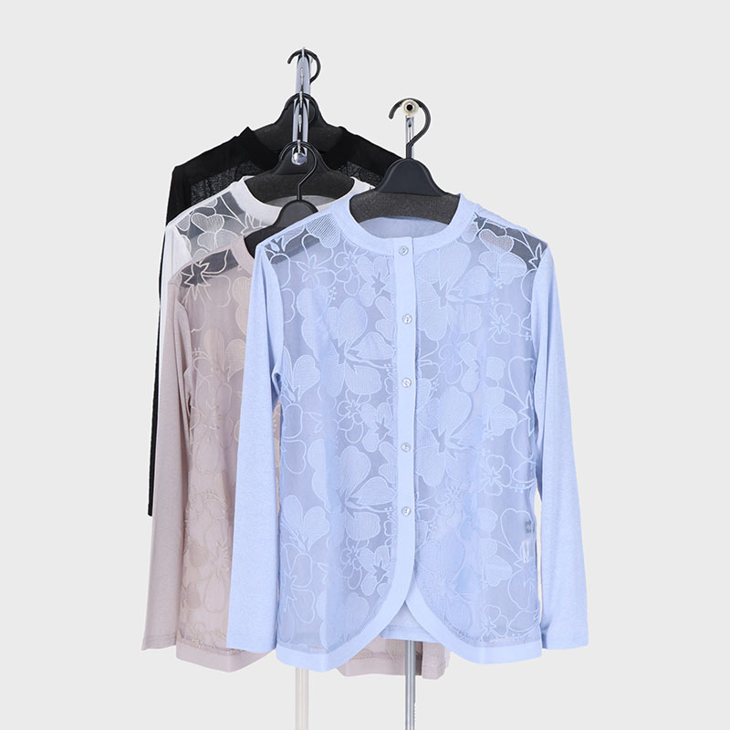 婦人オーガンジー刺しゅうカーディガン