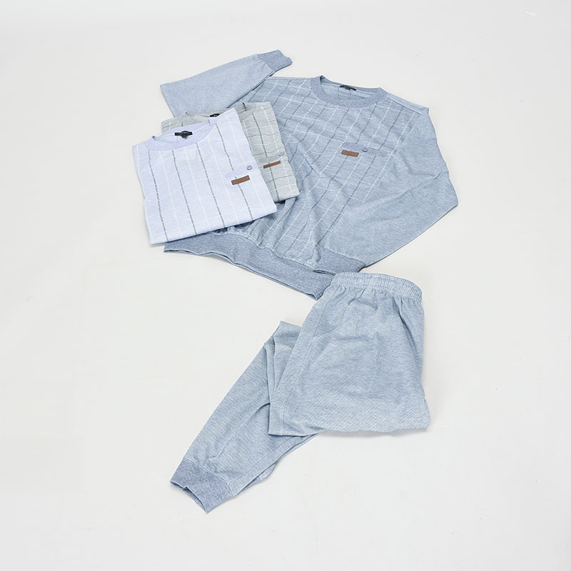 長袖鹿の子前身プリント丸首スーツ