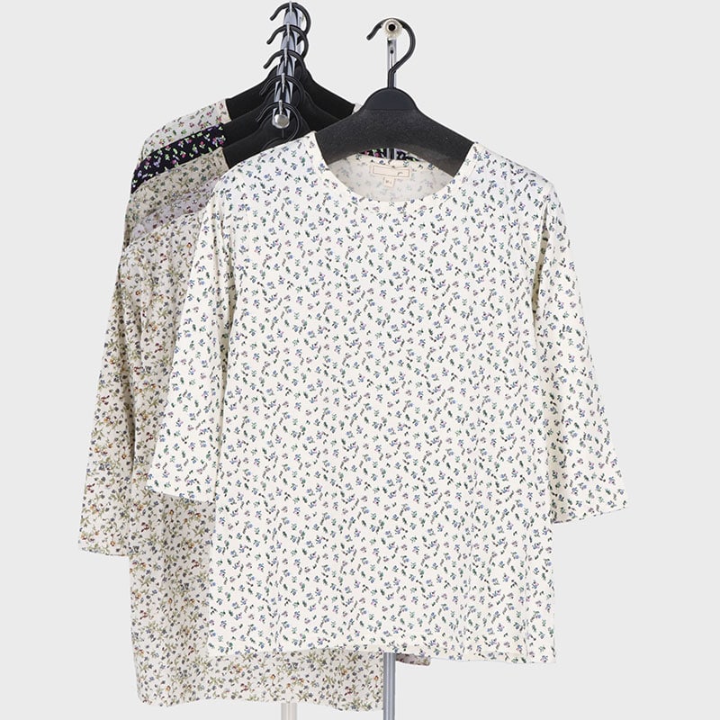婦人7分袖総柄プリント2柄Tシャツ