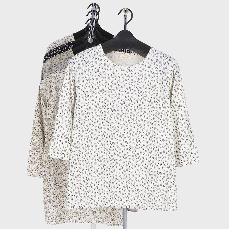 婦人7大寸分袖総柄プリント2柄Tシャツ