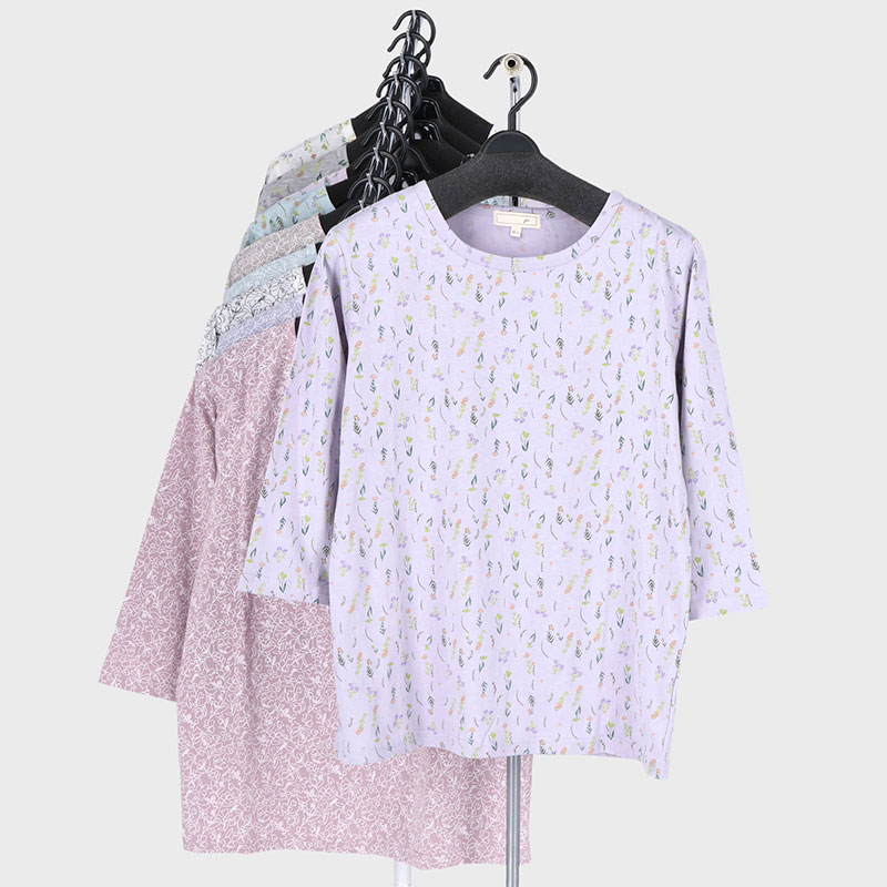 婦人7分袖総柄プリント2柄Tシャツ