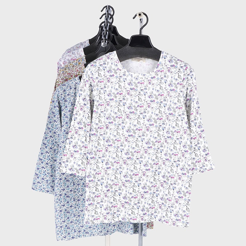 婦人大寸7分袖総柄プリント2柄Tシャツ