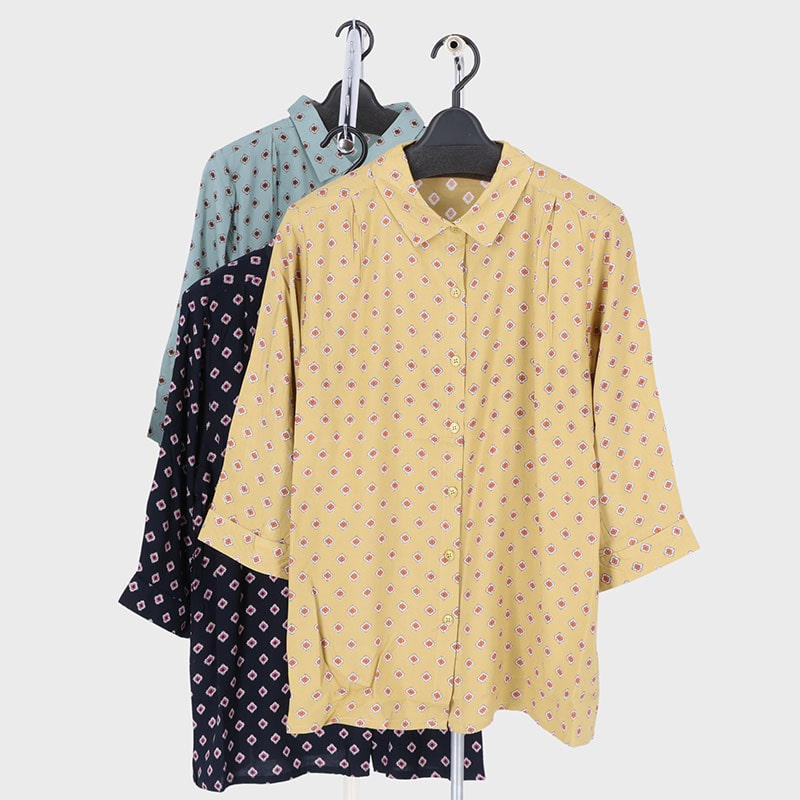 婦人大寸7分袖エスニック柄シャツ