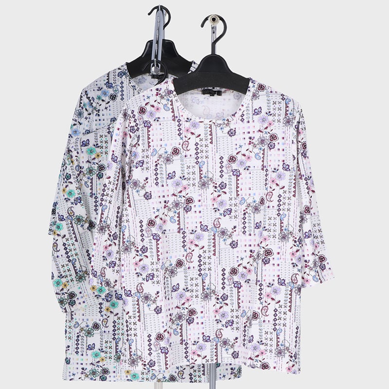 婦人7分袖ジャガードプリントTシャツ