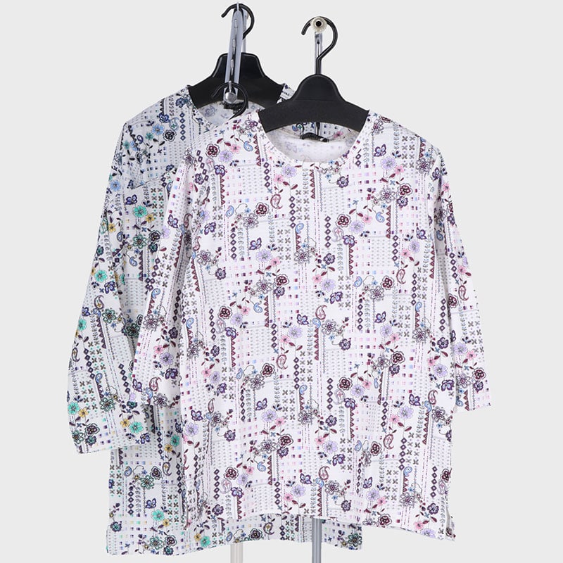 婦人大寸7分袖ジャガードプリントTシャツ