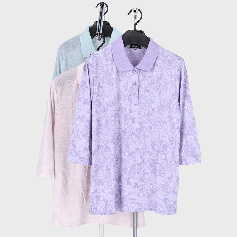 婦人大寸7分袖ジャガードポロシャツ